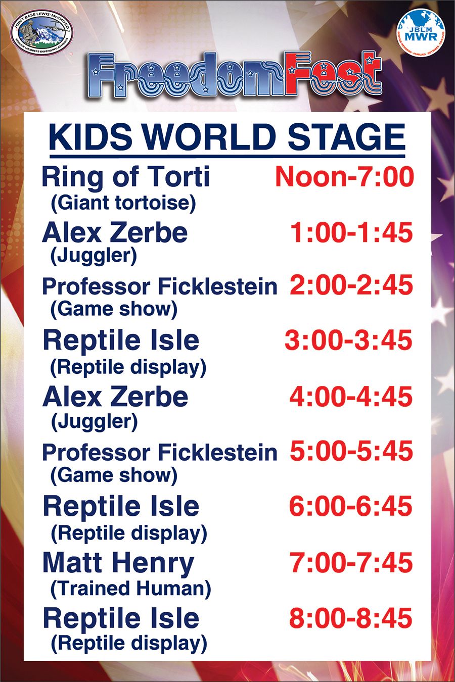 Join us for Freedom Fest at JBLM! On Saturday, June 28, revel in a day full of pre-Fourth of July festivities at Cowan and Memorial Stadiums.