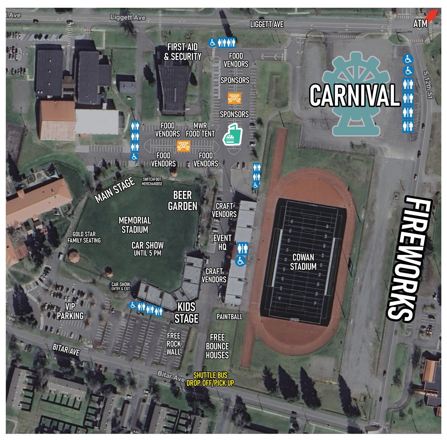While riding the shuttle bus to the event site is no longer required for the general public, parking is limited around the event. Due to this, we will offer free rotating buses from the DuPont Gate satellite parking area to the event site. After enjoying the event, return to the bus drop off point and catch the bus back to your vehicle.