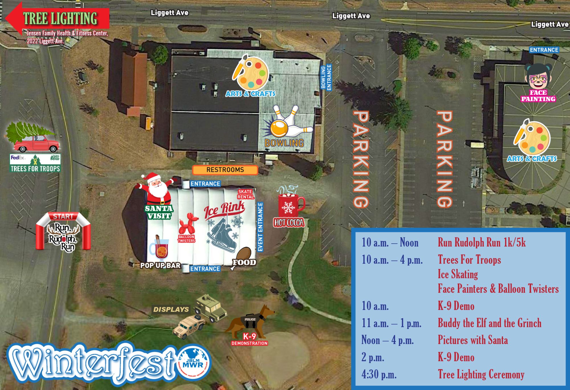 Winterfest will wrap up with our annual Tree Lighting ceremony at 4:30 p.m. in front of Jensen Family Health & Fitness Center. Music by America's First Corps Band and the Thomas Middle School Choir.