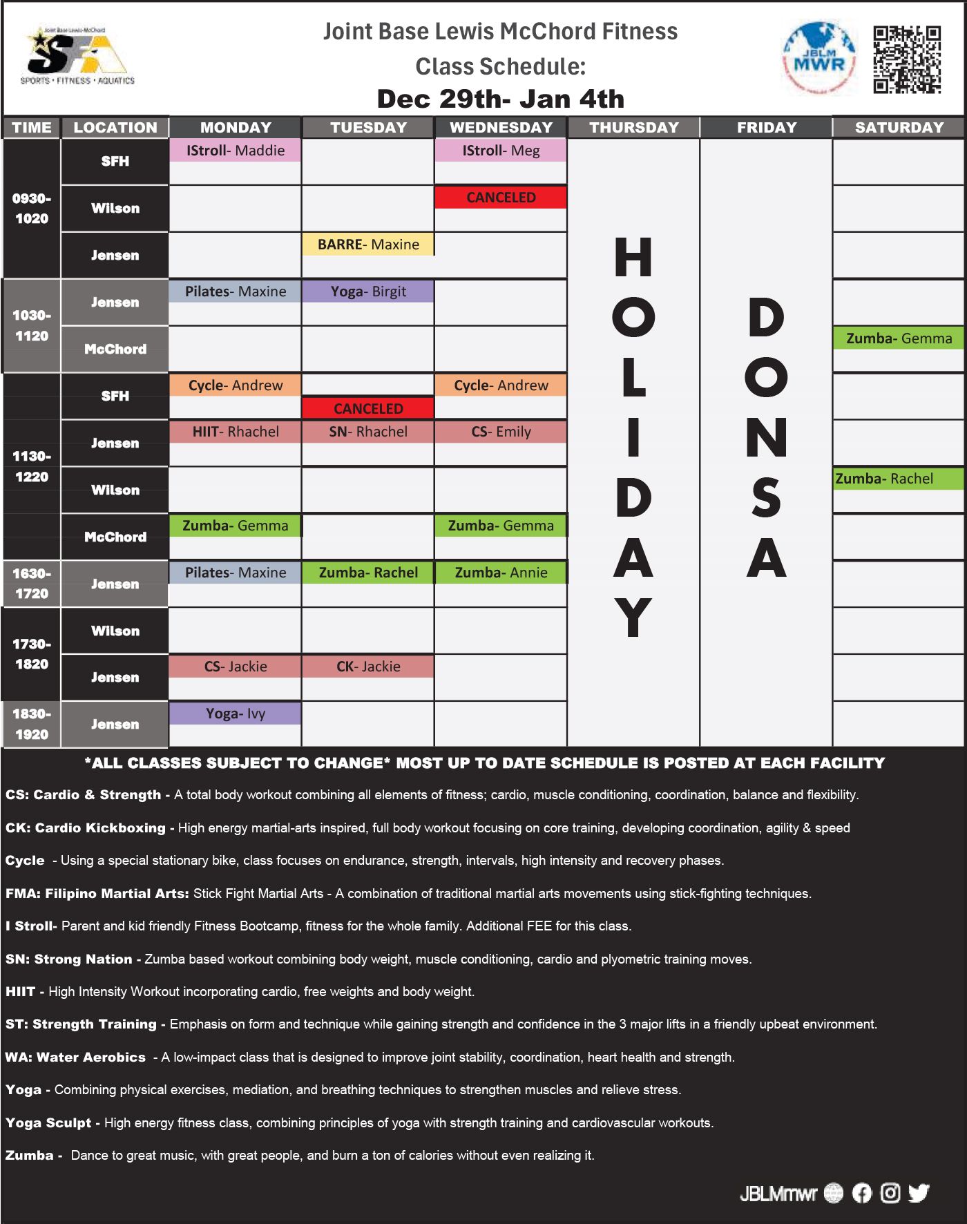 DEC 29-JAN 4 FITNESS CLASS SCHEDULE