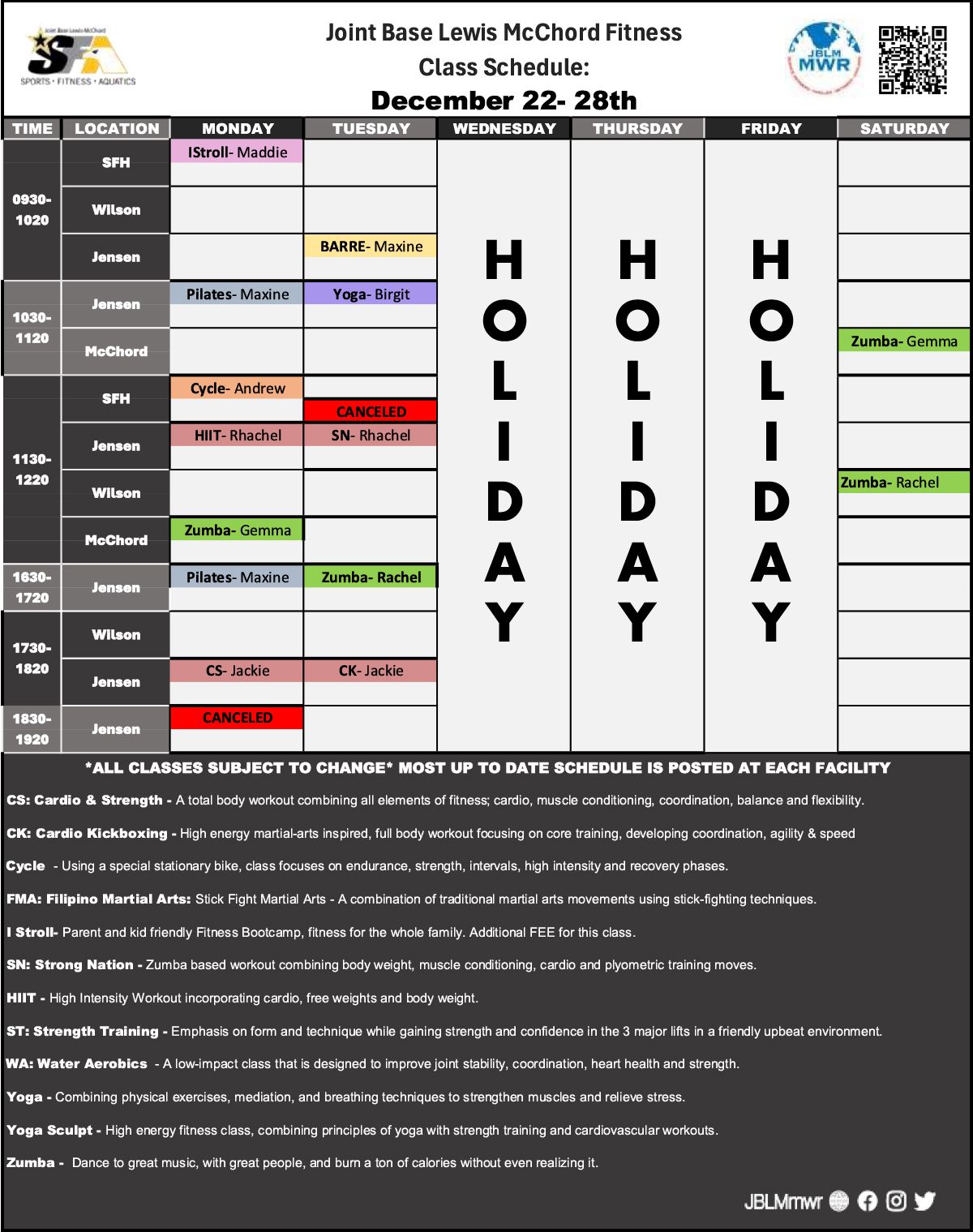 DEC 22-28 FITNESS CLASS SCHEDULE